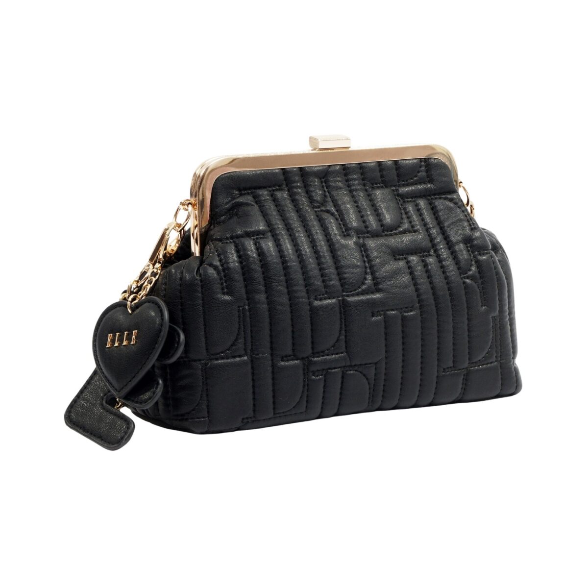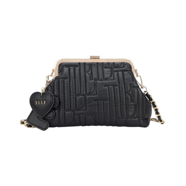 Τσαντάκι clutch της εταιρείας ELLE από ανάγλυφο υλικό ecoleather σε χρώμα black . Εξαιρετικό στυλ για βραδινές εξόδους και επίσημες περιστάσεις με μεταλλικό στόμιο και αλυσίδα για χιαστί κράτημα . Διαστάσεις 26.5 x 17 x 10 .