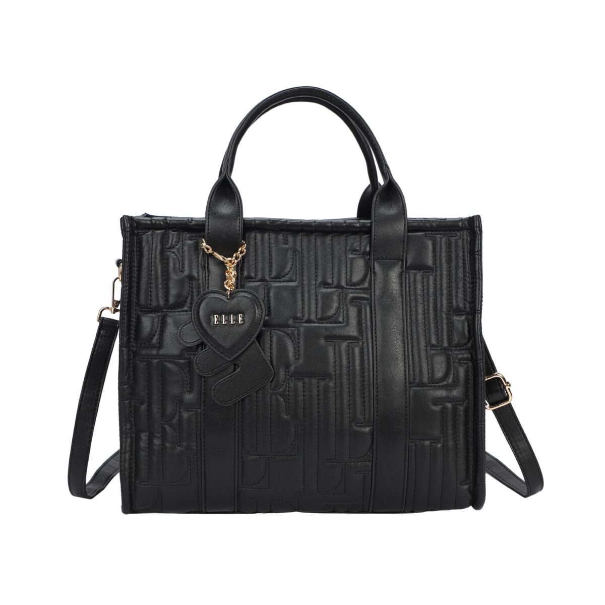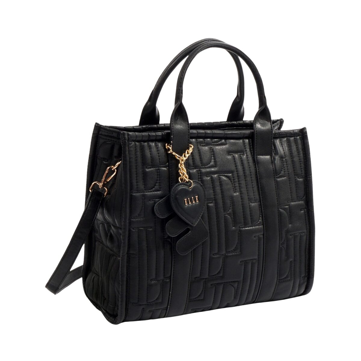 Τσάντα της εταιρείας ELLE από υλικό ανάγλυφο ecoletaher σε χρώμα black . Mια τσάντα χειρός αλλά και χιαστί ιδανική για γραφείο και απογευματινή έξοδο με αρκετή χωρητικότητα . Διαστάσεις 32 x 28.5 x 11 .