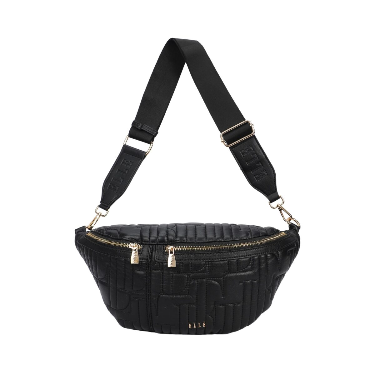 Τσαντάκι μέσης γυναικείο της εταιρείας ELLE από ανάγλυφο υλικό ecoleather σε χρώμα black . Ιδανικό για shopping , καθημερινές δραστηριότητες και ταξίδια . Διαστάσεις 39 x 16.5 x 12 .